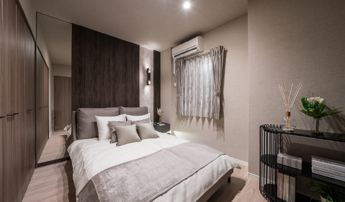 忙しい日常をリセットして、ほっと素顔の自分に戻れる場所。 主寝室はご夫婦のプライベートリビングとして、落ち着きあるゆとりの広さを確保。 寝室としてはもちろん、おやすみ前のひとときや休日の朝など、二人でのんびり過ごせる寛ぎの時間をもたらします。