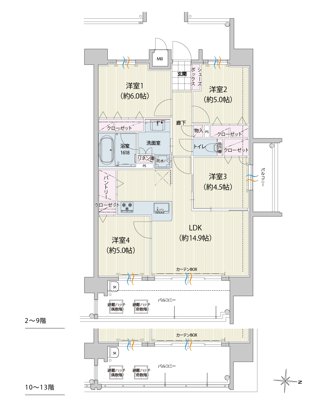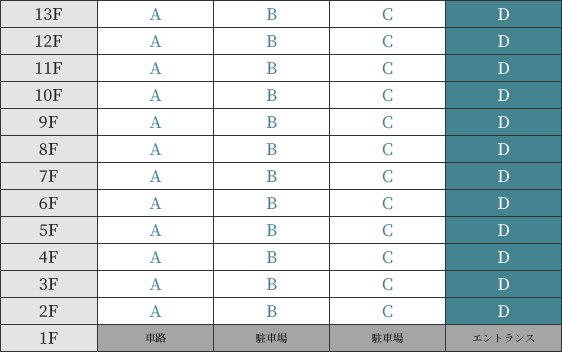 2〜9F95.83㎡(28.98坪)10〜13F95.90㎡(29.00坪)