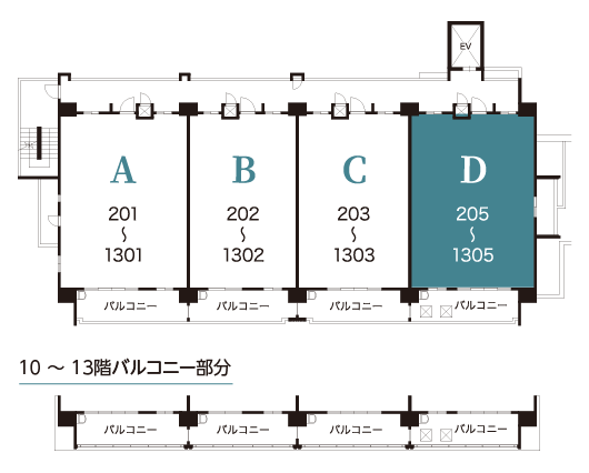 2〜9F17.35㎡(5.24坪)10〜13F17.42㎡(5.26坪)