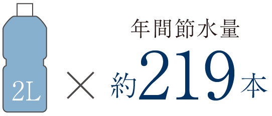 たとえば、1日6回男子小用時に「eco小」洗浄を使うと、小洗浄使用に比べ、年間ペットボトル(2L)219本分も節水できます。
