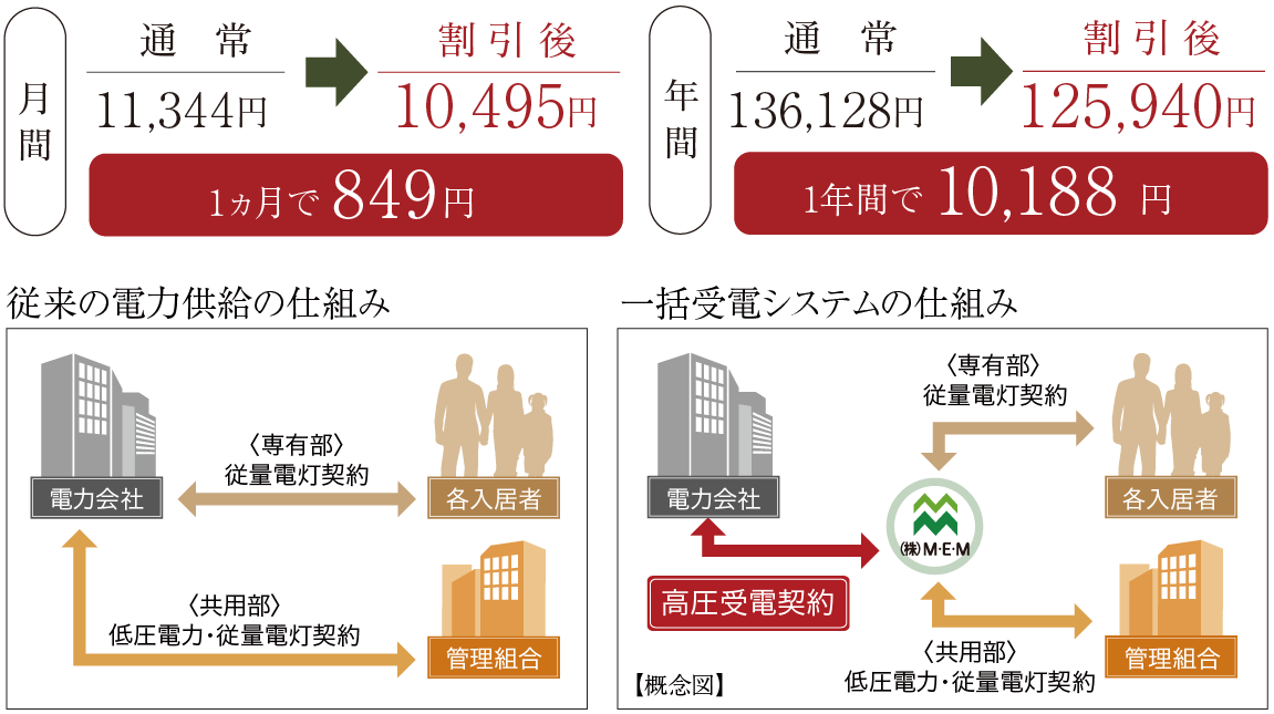 一括受電システムで電気料金を最大7%軽減。