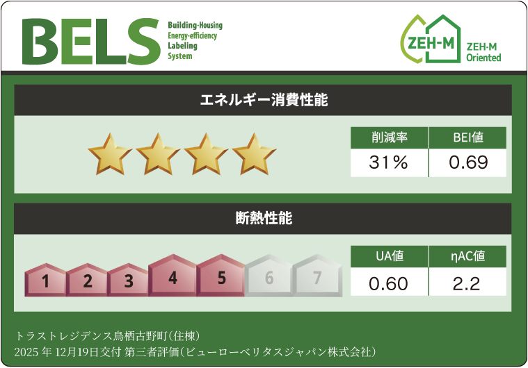 BELS(ベルス)とは、建築物省エネルギー性能表示制度のことで、省エネ性能を第三者評価機関が評価し、認定する制度です。